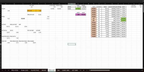 Excel spreadsheets where I made my own models. These are for projecting player stats in future games based on their previous games, and the projected game script.